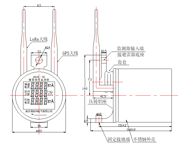 5)外形、安装尺寸以及安装方式与传统监测器兼容,方便实现传统避雷器在线监测器升级为无线数字智能传感器,满足数字化改造的要求;